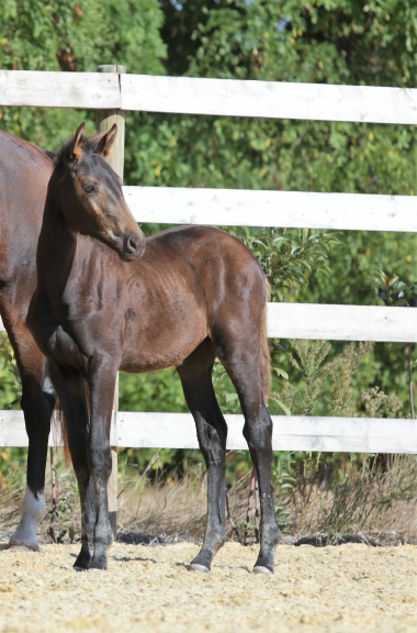 Le croisement du meilleur étalon mondial Diamant de Semilly et d'Okla Gaffelière ISO 140 très imprégnée de sang aussi bien du côté de son père que de sa mère. Le résultat est juste magnifique avec une pouliche chic, expressive, légère tout en étant bien armée dans ses articulations. Une aubaine pour le sport ou pour l'élevage.